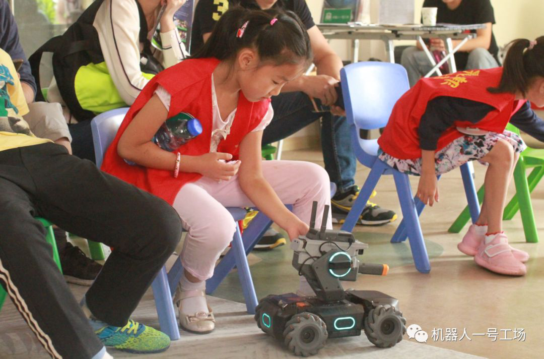 通过自己动手操作机甲大师,孩子们见识到了可以横着跑、斜着跑,不受地形影响的麦克纳姆轮!本次公益课堂是我们RoboMaster S1在机器人一号工场的首次亮相,不负众望!