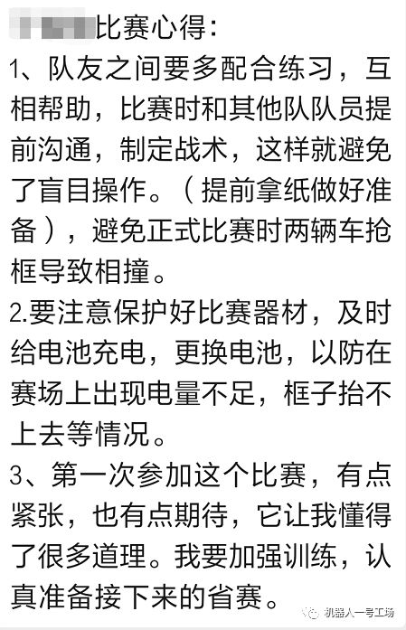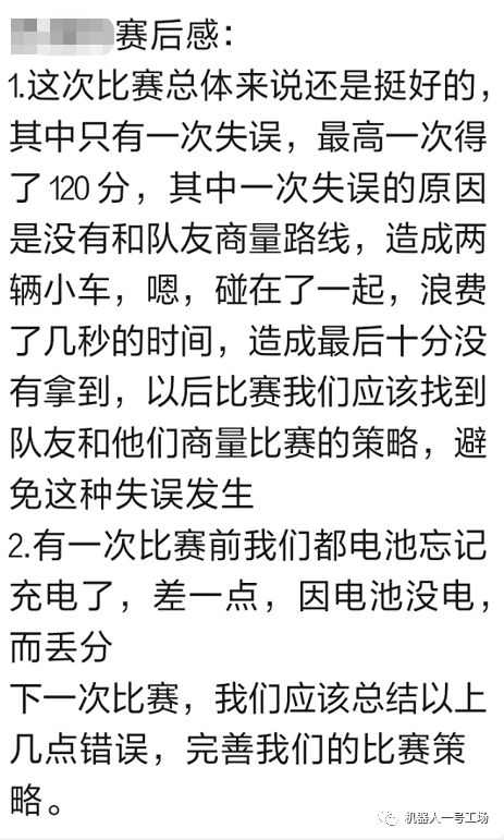 一个任务成功3次及以上,马虎大意是比赛的大忌;学会观察,等待的过程中注意观察场地、道具以及别人出现的问题;现场调试要有耐心......所有的问题都会在训练中“蹦出”,一点点的试错、一点点的成长,所有的付出都会在未来体现!